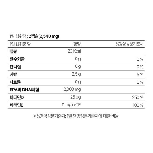 제품명에서 알 수 있듯이 '맥스 2000'이라는 이름은 허투루 붙은 것이 아닙니다. 하루 섭취량 기준 EPA 및 DHA 함량을 꽉 채워 설계하여, 혈행 개선뿐만 아니라 건조한 눈 개선, 기억력 개선까지 도움을 줄 수 있는 기능성 함량을 갖추고 있습니다.